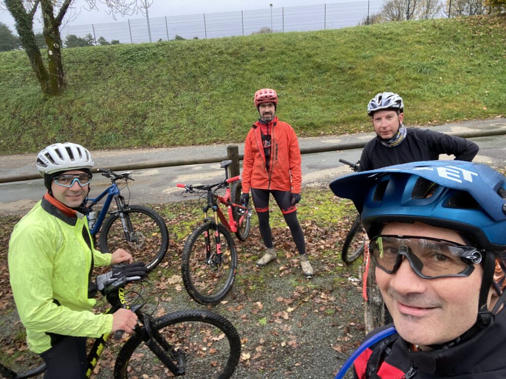 Mais quelles racines? Les premières qu’il trouve, ce sont celles dans la montée du Grammont, par le côté le long de la pâture. Un démarrage « à la Gaël », à froid, pentu, sur sol humide et tapis de feuilles glissantes. Autant dire que les chances d’arriver au chemin sans poser pied à terre sont faibles. Et effectivement, ils lâchent les uns après les autres, même le président bien que résistant le plus longtemps, cale à 3m. Ça commence bien.