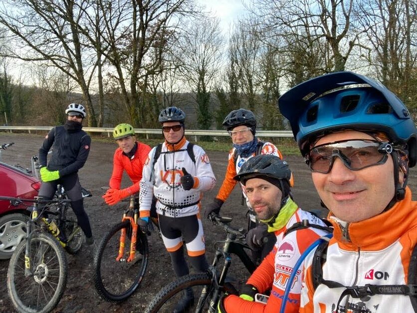 La descente qui suit et que vous connaissez si bien est l’heure de remettre les pendules à l’heure. Dorian arrive après Gaël en prétextant qu’il a été prudent. Mais oui mais oui, le Président magnanime fait semblant d’y croire, puis les autres arrivent à leur tour. Francis est grelottant. Pas de froid, mais de peur. Ses pneus glissent partout. Enfin Pat arrive et n’est pas peu fier de sa cascade: il a chuté… au ralenti. Micka témoigne l’avoir vu basculer en OTB tout doucement mais sûrement pour s’écraser mollement au sol et rester coincé contre un tronc.