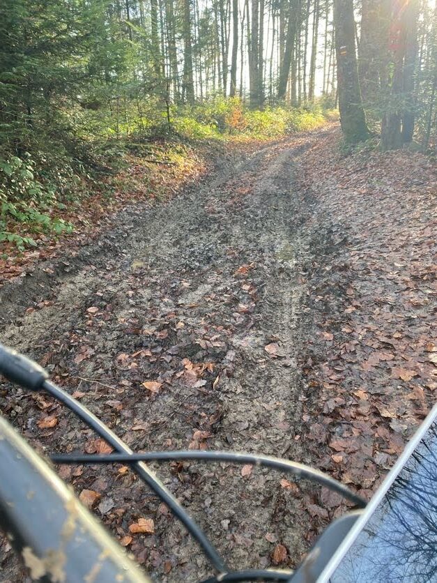 Les autres n’ont pas le temps de le prévenir qu’il est déjà empêtré dans les branches de la coupe de bois. Christophe en fin observateur contourne et pique en tête. Francis menace: en bas c’est l’enfer boueux!