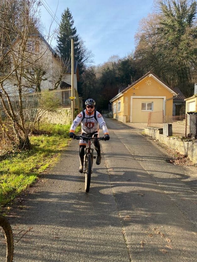 Francis en a assez, il veut rentrer par la route, et brûler ses pneus ou en faire une déco. Pas sûr que Nathalie apprécie. Gaël le convainc de rentrer « par le petit bois qui va à Vandoncourt tu sais? » et Francis, pourtant un VTTiste expérimenté, se laisse avoir. La Combe Peugeot est un peu encombrée, un peu grasse mais il faut croire que le retour donne des ailes à Francis. Heureusement car il en a marre, car il tient un rythme d’enfer.